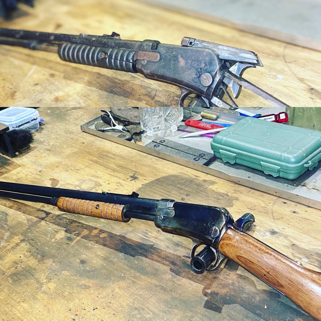 Full restoration and fitment of new stock components on a neglected model 06 pump action Winchester .
